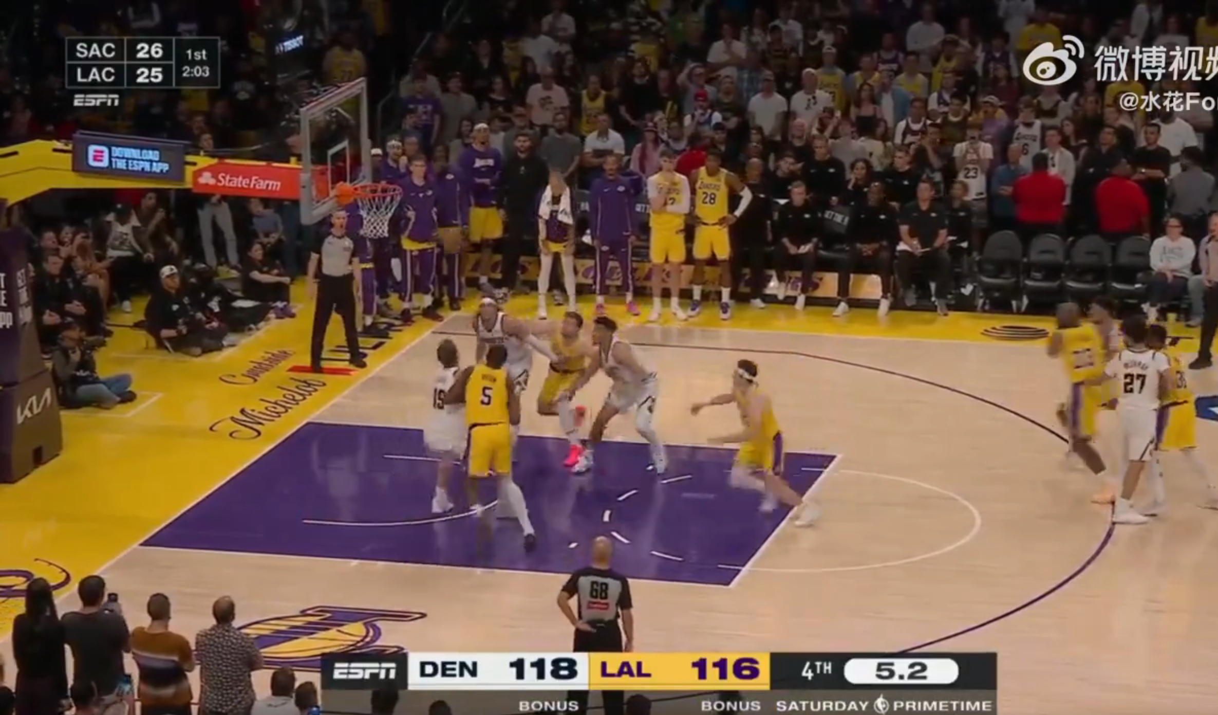 本场比赛最后时刻,湖人落后3分,里夫斯第一罚罚进,第二罚弹框而出,结果他抢下篮板之后,最后1.9秒抛投打进,连得3分完成绝平,将比赛拖入加时。
